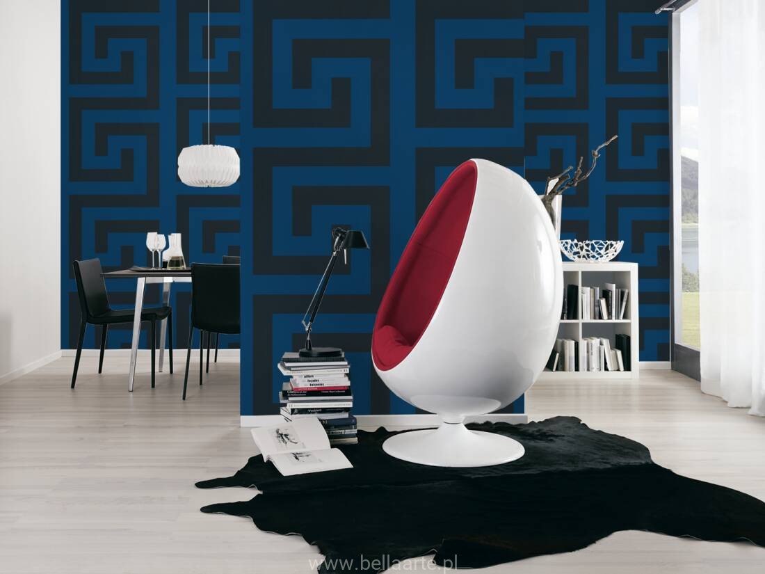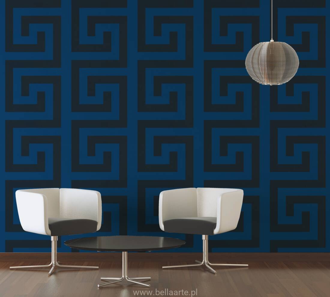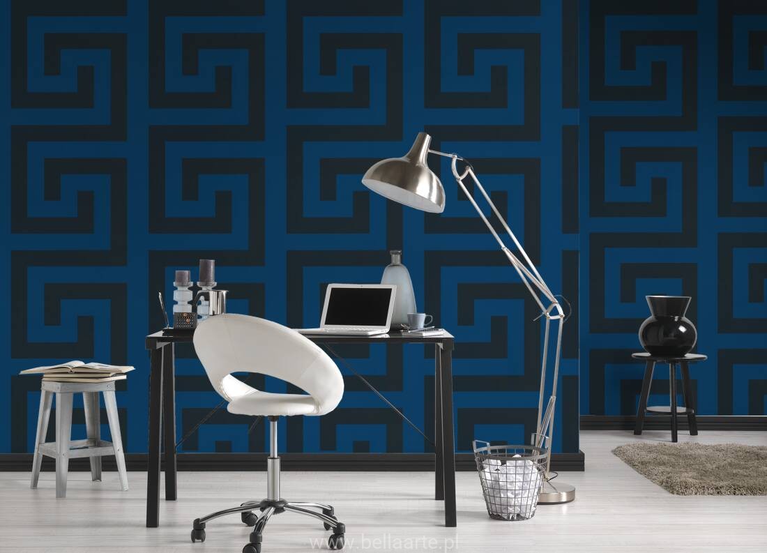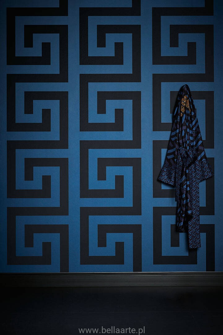 Wzór geometryczny "meander grecki" jest również charakterystyczny dla marki Versace. Ornamenty na tapecie grają ze światłem tworząc niepowtarzalny klimat.