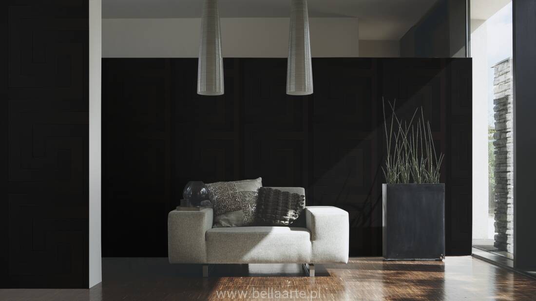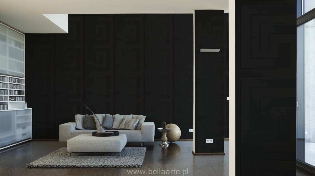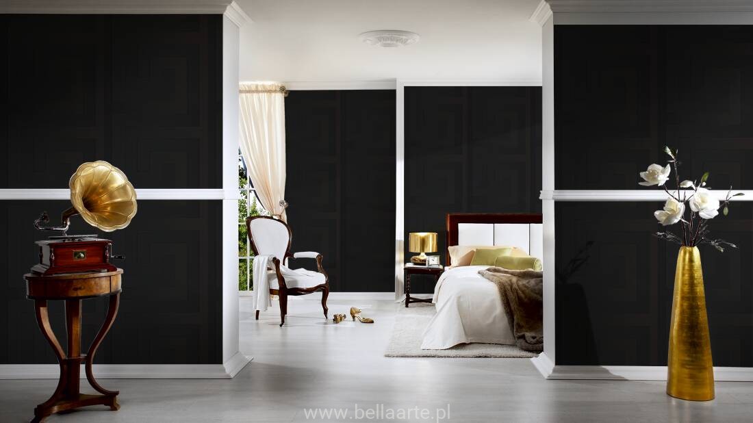 Wzór geometryczny "meander grecki" jest również charakterystyczny dla marki Versace. Ornamenty na tapecie grają ze światłem tworząc niepowtarzalny klimat.