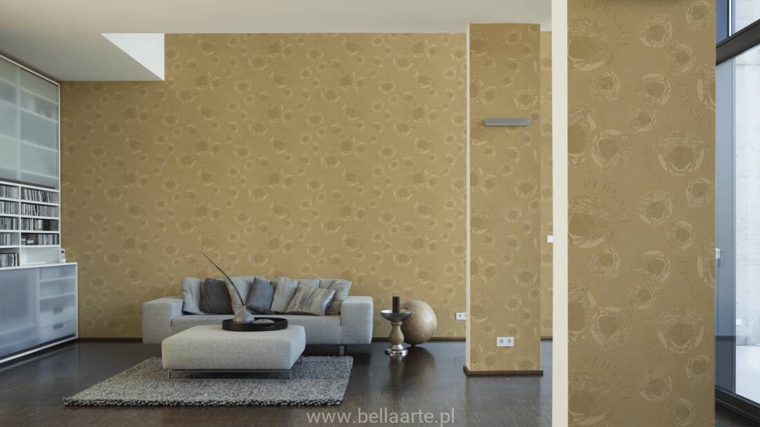 Wzór z głowami Meduzy jest jednocześnie logiem marki Versace. Tapeta jest również imitacją jedwabiu, jednakże jest to wysokiej klasy winyl.