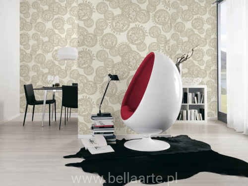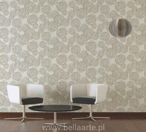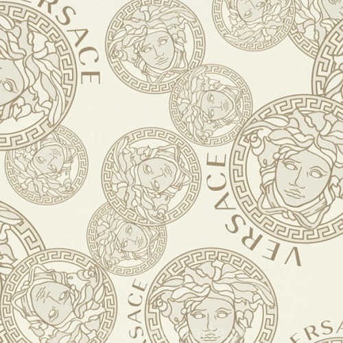 Wzór z głowami Meduzy jest jednocześnie logiem marki Versace. Tapeta jest również imitacją jedwabiu,jednakże jest to wysokiej klasy winyl.
