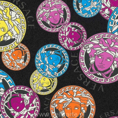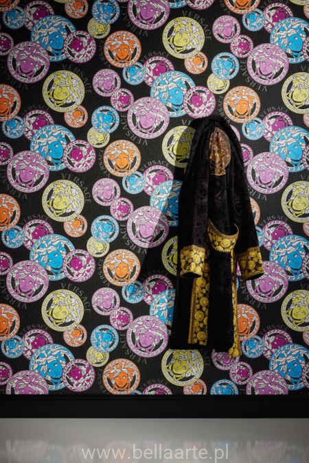 Wzór z głowami Meduzy jest jednocześnie logiem marki Versace. Tapeta jest również imitacją jedwabiu,jednakże jest to wysokiej klasy winyl.