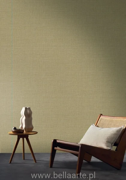 To tapeta imitująca tkaną rafię, która łączy prostotę z rzemieślniczym wyrafinowaniem.