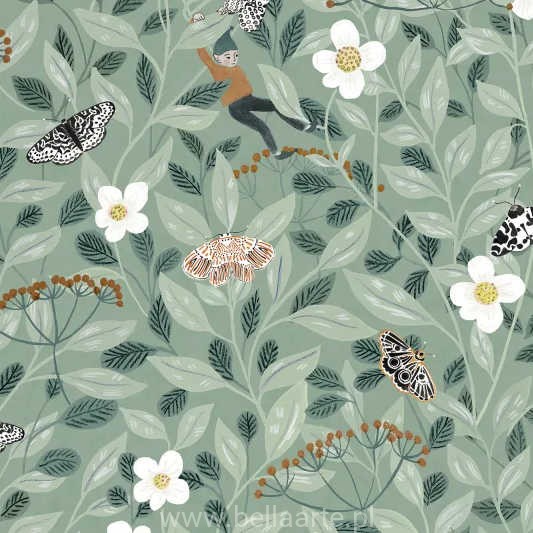 Tapeta Pixie Shore to liście, motyle i jeszcze coś lub ktoś.
