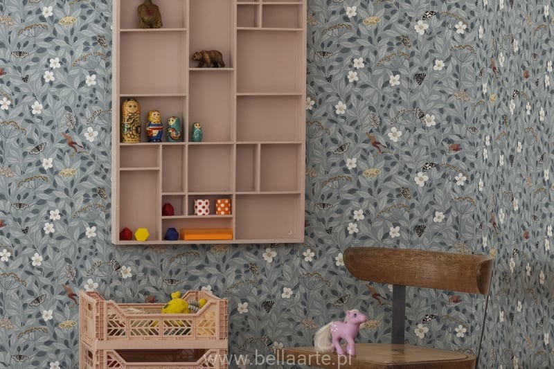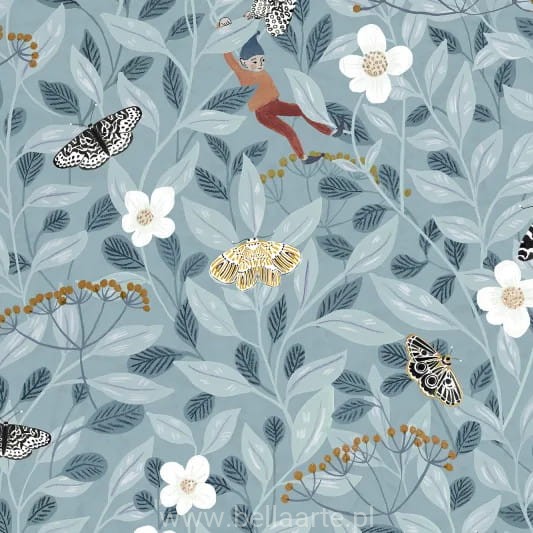 Tapeta Pixie Shore to liście, motyle i jeszcze coś lub ktoś.