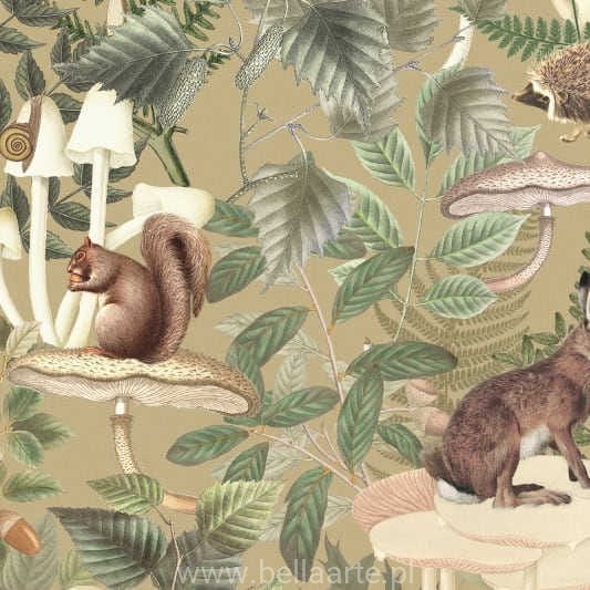 Wśród paproci i grzybów żyjące w harmonii wiewiórki, zające czy jeże.